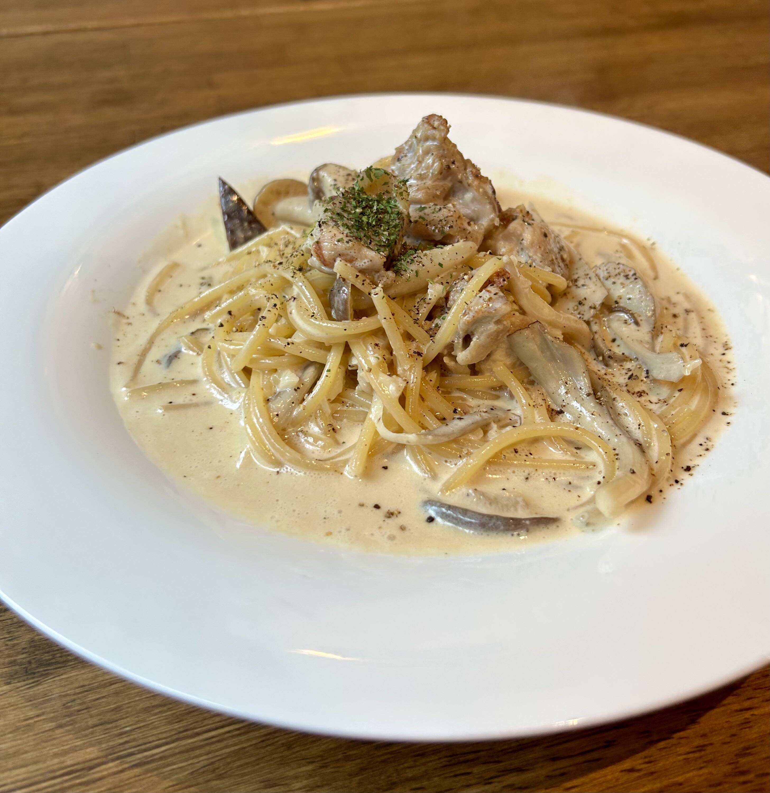 味噌クリームパスタ 2025年12月18日 おすすめパスタ 【徳島県産阿波尾鶏のモモ肉と4種のキノコの味噌クリーム】 数量限定です!!! シェフが地鶏に拘った、冬にピッタリのクリームパスタ。 味噌のコクと風味が、地鶏とキノコとの相性バツグン! ランチで+¥400でご提供いたします! 是非ともお試しください♪